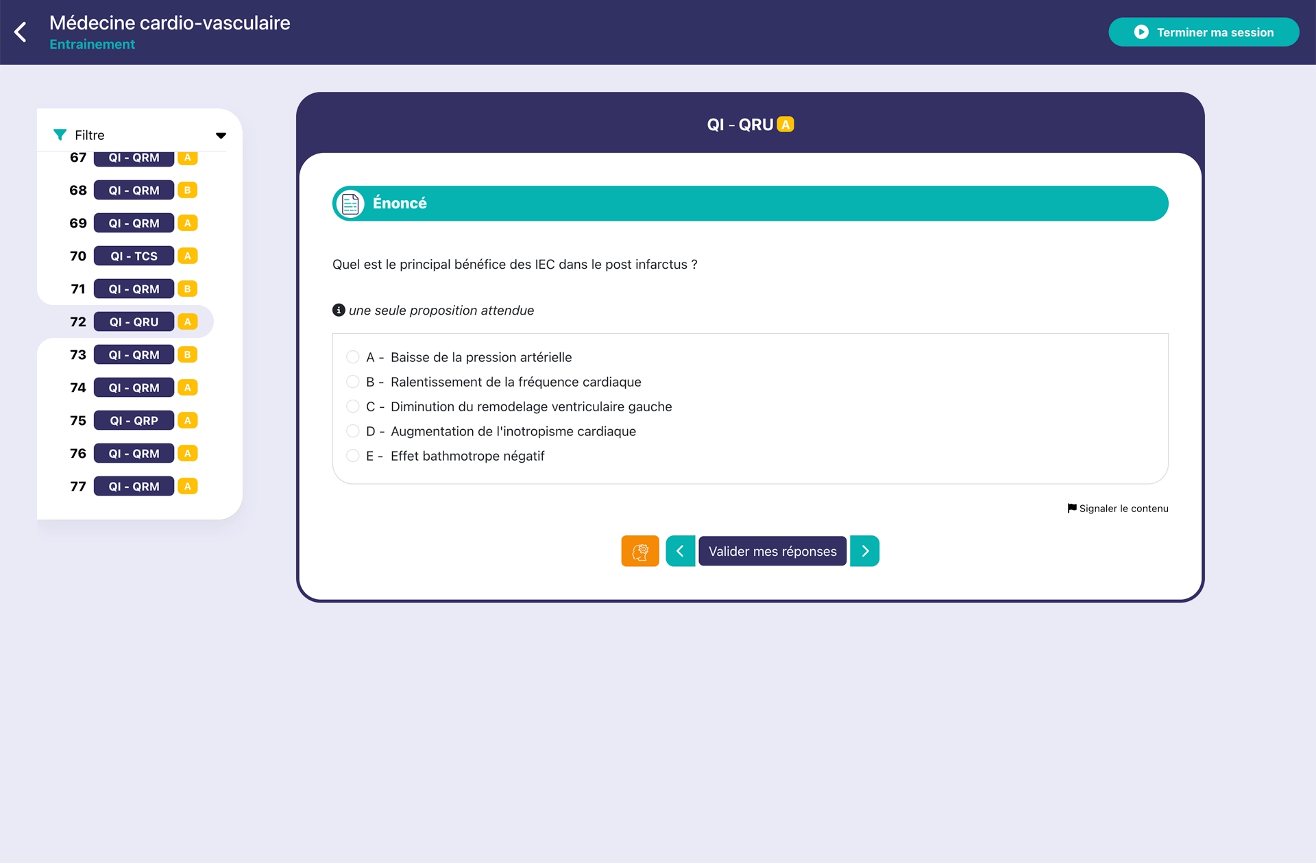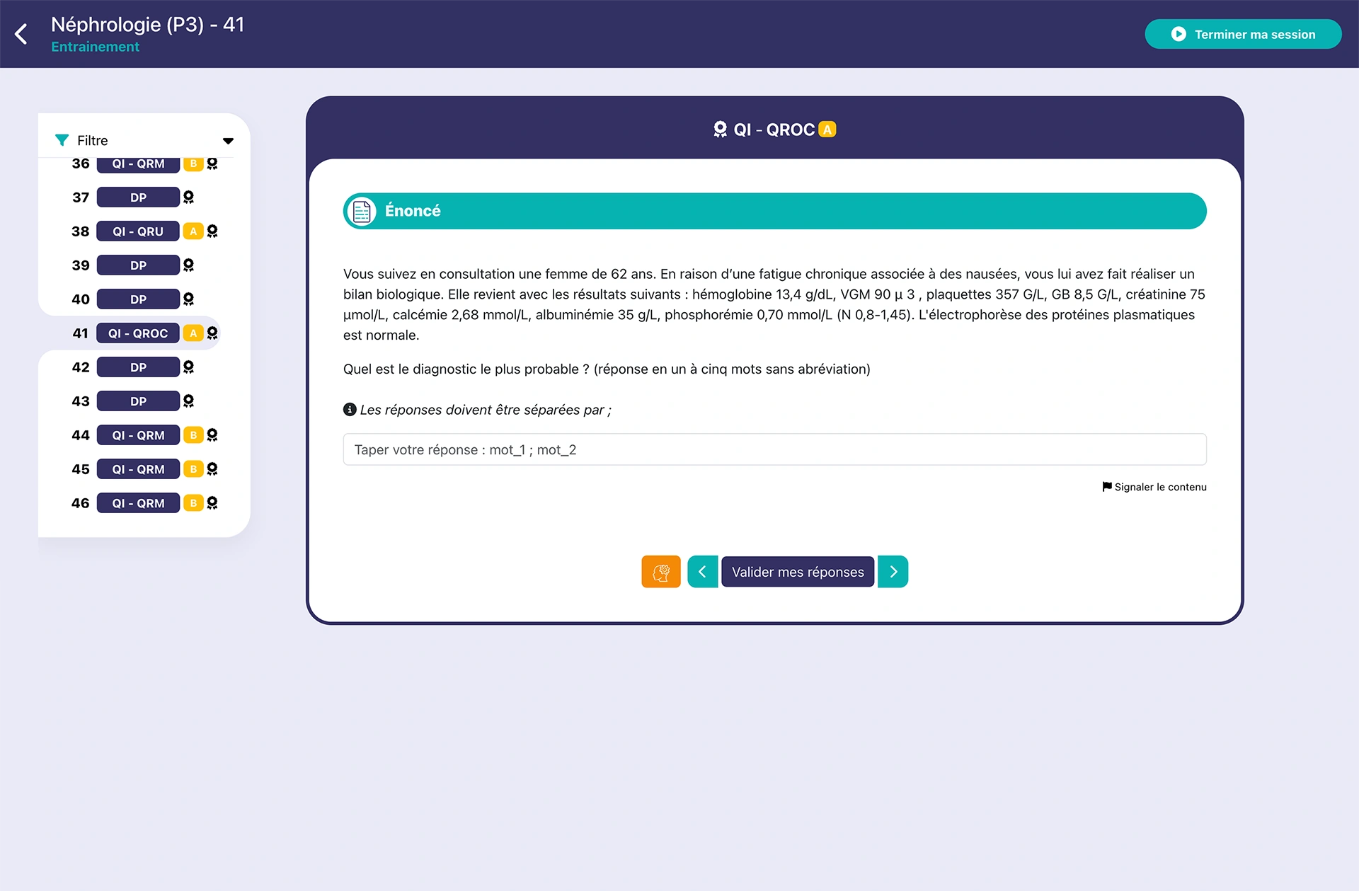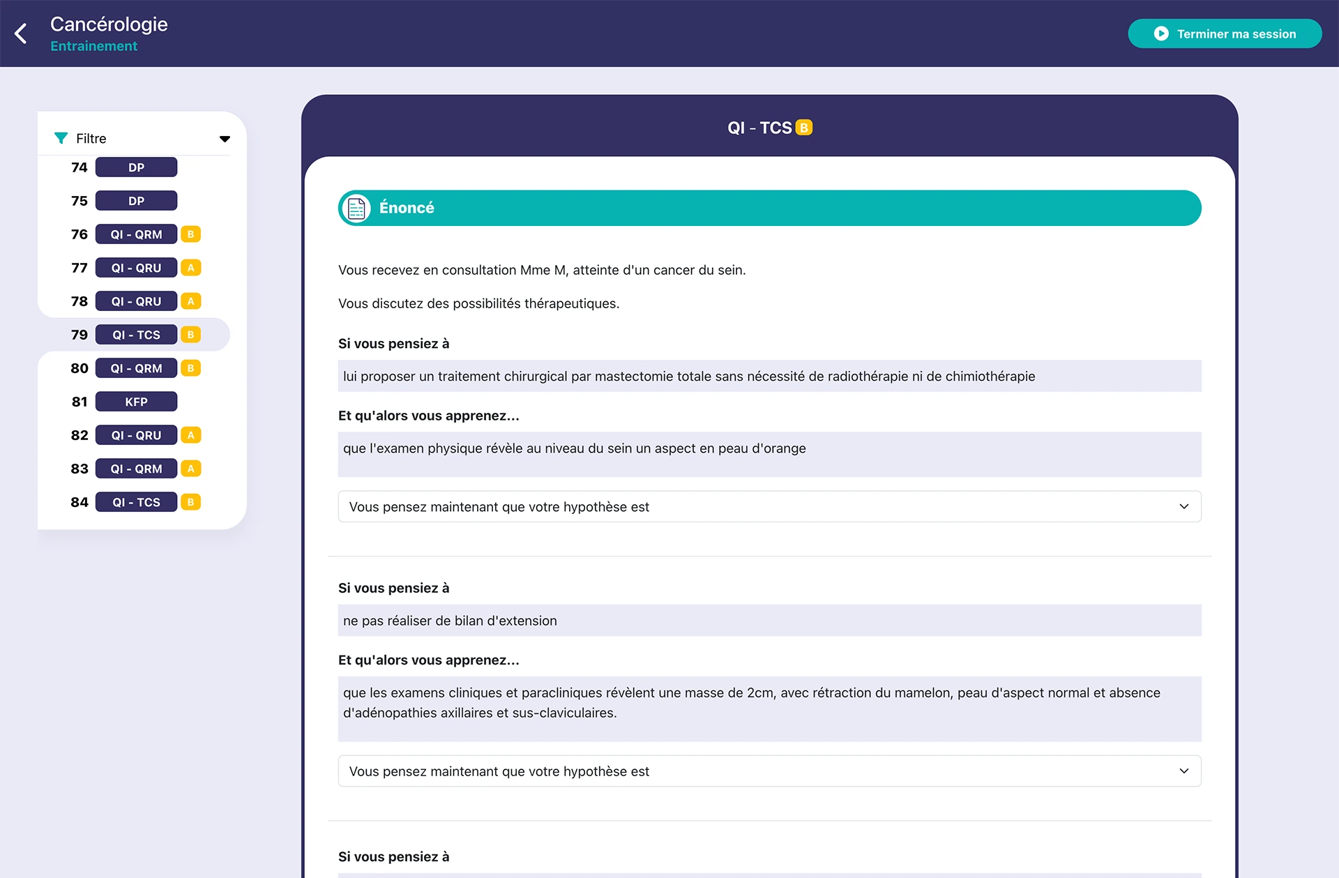 Les examens blancs sur La Prépa EDN Hippocrate sont des tests simulés qui reproduisent le format des examens réels auxquels les étudiants devront faire face, comme les EDN. Ces tests sont généralement conçus pour simuler les conditions réelles du concours : le temps imparti, la difficulté des questions, la diversité des matières, etc. Ils sont un excellent moyen de s’entraîner et de se préparer à la fois sur le plan académique et psychologique. Ainsi avec les examens blancs de La Prépa EDN Hippocrate tu pourras identifier les domaines à améliorer, voir ton évolution, réduire le stress et surtout t’entrainer en conditions réelles afin d’être le/la meilleur(e) le jour de l’examen.